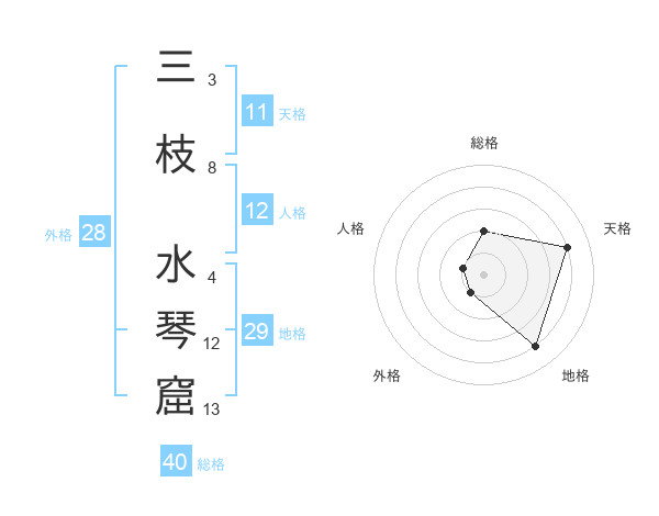 三枝 水琴窟さんを姓名の画数から五運を鑑定