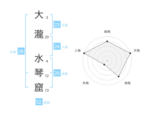 大瀧 水琴窟さんを姓名の画数から五運を鑑定