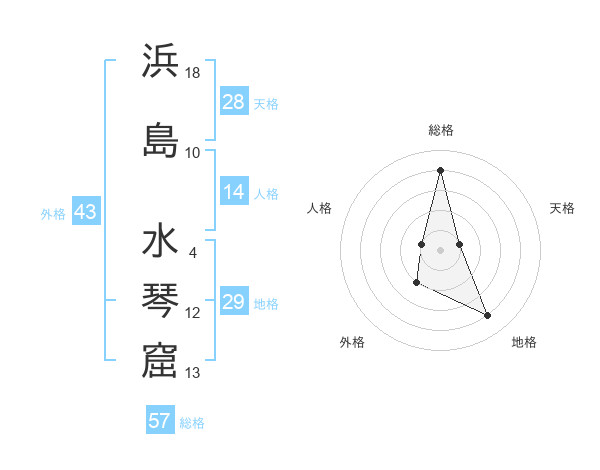 浜島 水琴窟さんを姓名の画数から五運を鑑定