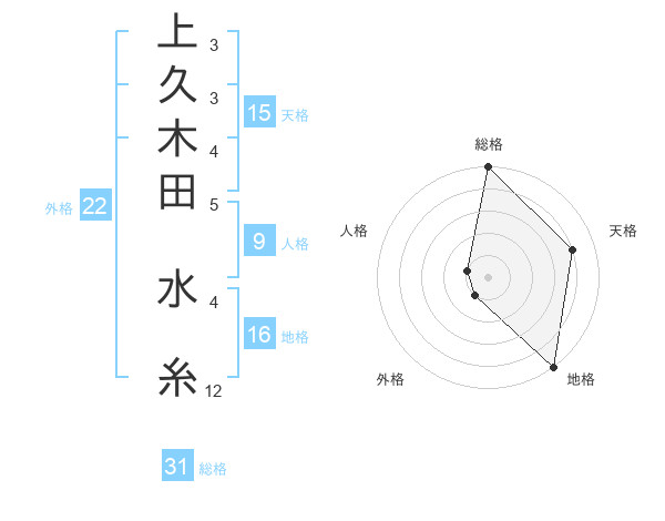 上久木田 水糸さんの総格は31画の5点!