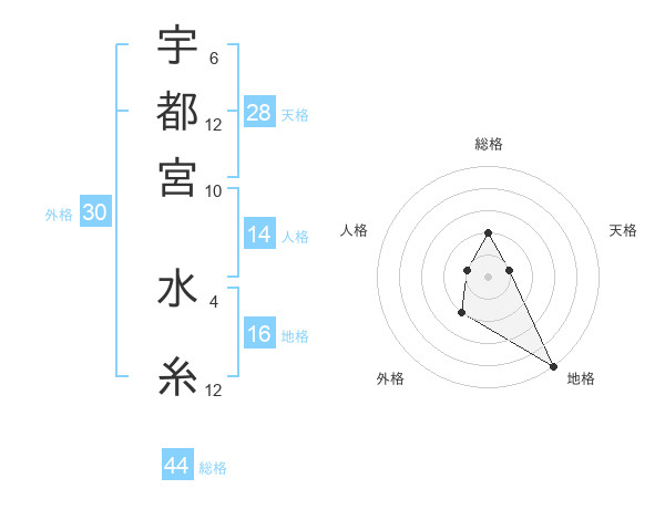 宇都宮 水糸さんを姓名の画数から五運を鑑定