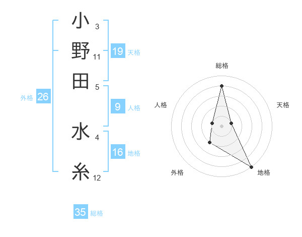 小野田 水糸さんを姓名の画数から五運を鑑定