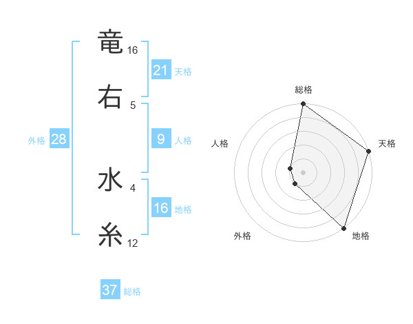 竜右 水糸さんの総格は37画の5点!