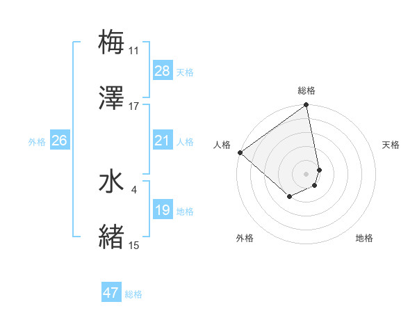 梅澤 水緒さんを姓名の画数から五運を鑑定