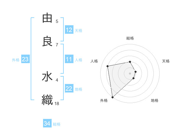 由良 水織さんの総格は34画の2点!