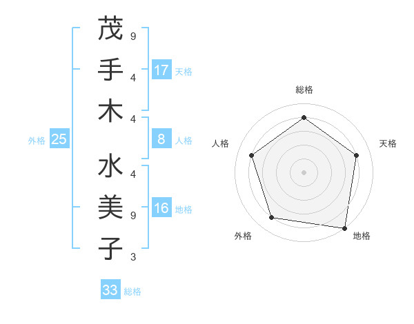茂手木 水美子さんを姓名の画数から五運を鑑定
