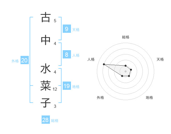 古中 水菜子さんの総格は28画の1点!