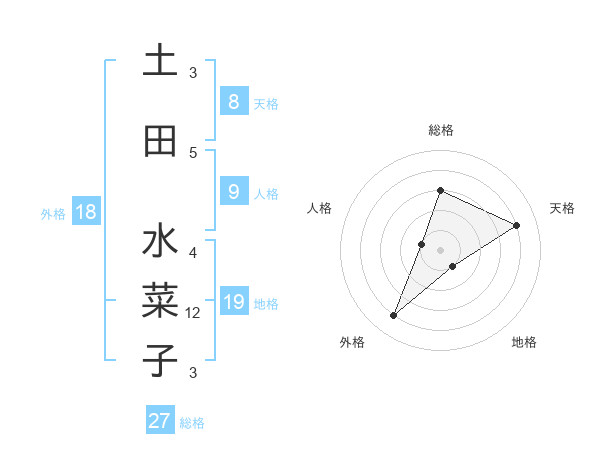 土田 水菜子さんを姓名の画数から五運を鑑定