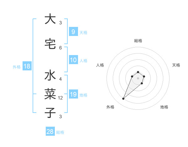 大宅 水菜子さんを姓名の画数から五運を鑑定
