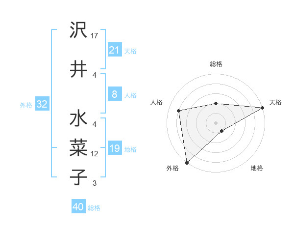 沢井 水菜子さんの天格は21画の5点!