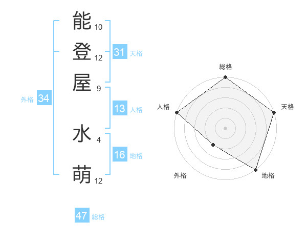 能登屋 水萌さんを姓名の画数から五運を鑑定