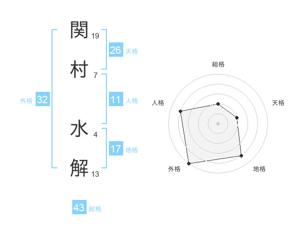 関村 水解さんの総格は43画の2点!