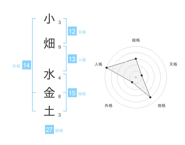 小畑 水金土さんを姓名の画数から五運を鑑定