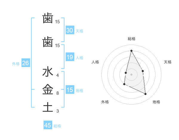 歯歯 水金土さんの総格は45画の4点!