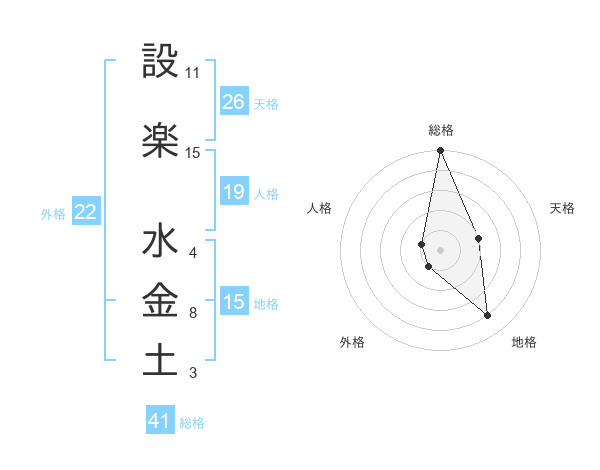 設楽 水金土さんを姓名の画数から五運を鑑定
