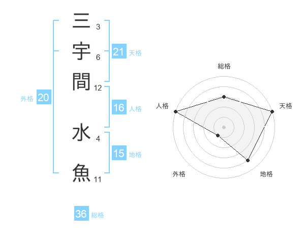 三宇間 水魚さんを姓名の画数から五運を鑑定