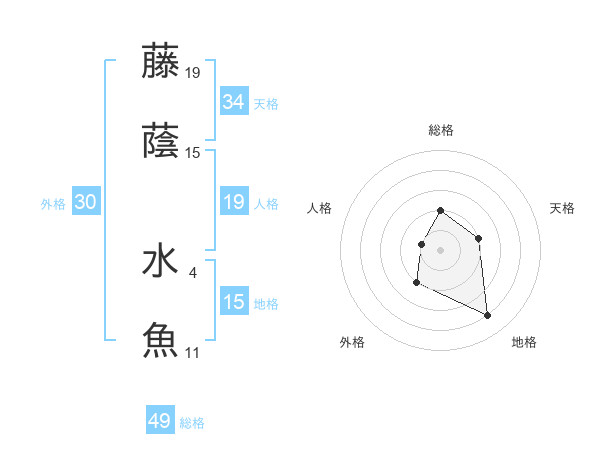 藤蔭 水魚さんを姓名の画数から五運を鑑定