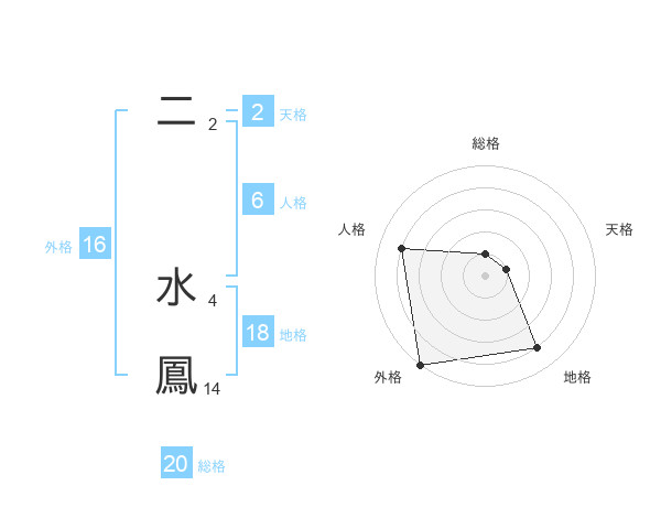 二 水鳳さんの総格は20画の1点!