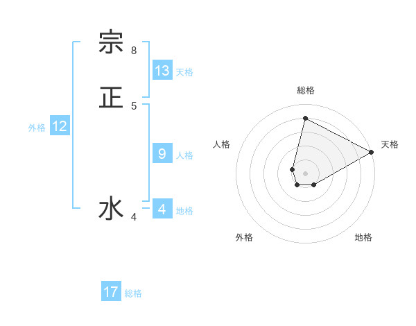 宗正 水さんの総格は17画の4点!