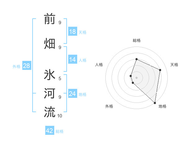 前畑 氷河流さんを姓名の画数から五運を鑑定