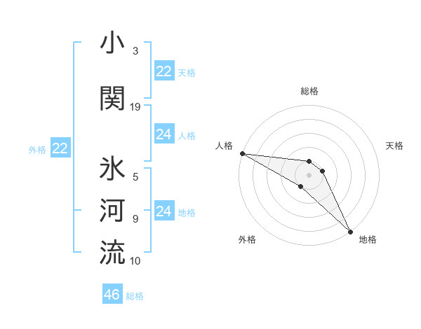小関 氷河流さんを姓名の画数から五運を鑑定