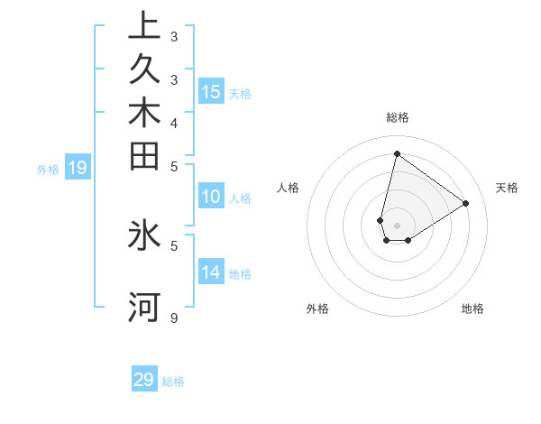 上久木田 氷河さんを姓名の画数から五運を鑑定