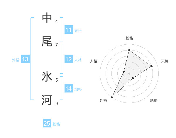 中尾 氷河さんを姓名の画数から五運を鑑定