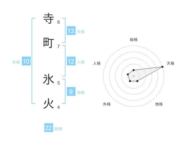 寺町 氷火さんの総格は22画の1点!