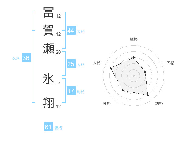 冨賀瀬 氷翔さんの総格は61画の3点!