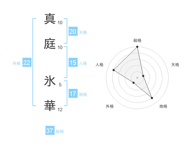 真庭 氷華さんの総格は37画の5点!