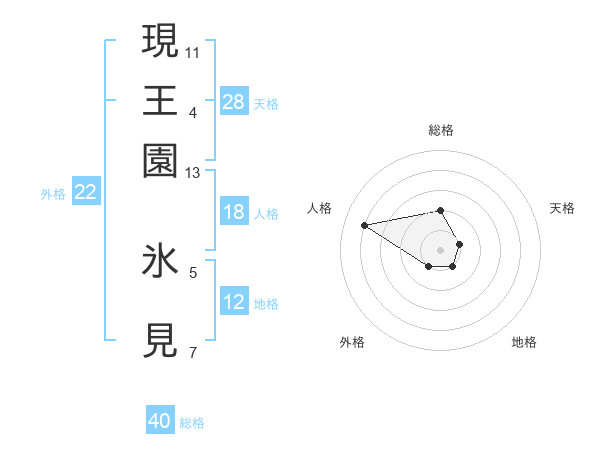 現王園 氷見さんを姓名の画数から五運を鑑定