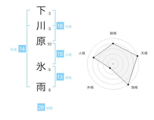下川原 氷雨さんを姓名の画数から五運を鑑定