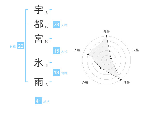 宇都宮 氷雨さんを姓名の画数から五運を鑑定