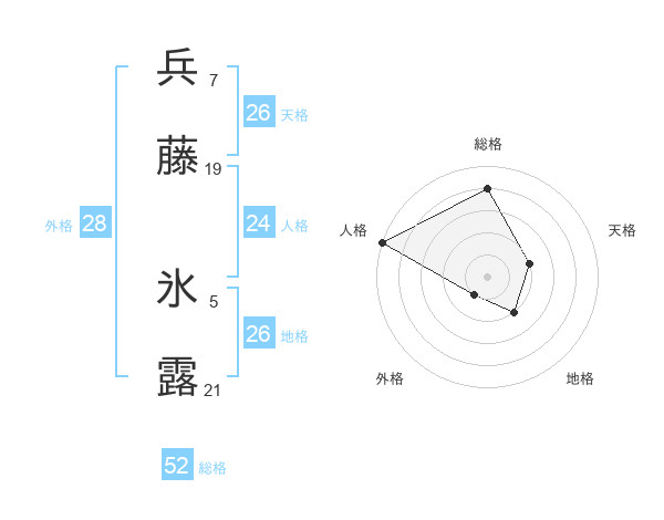 兵藤 氷露さんを姓名の画数から五運を鑑定
