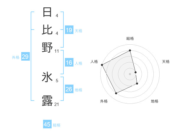 日比野 氷露さんの総格は45画の4点!