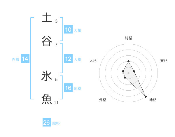 土谷 氷魚さんの総格は26画の2点!
