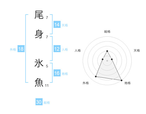 尾身 氷魚さんの総格は30画の2点!