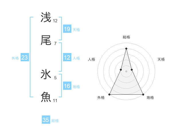 浅尾 氷魚さんの総格は35画の4点!