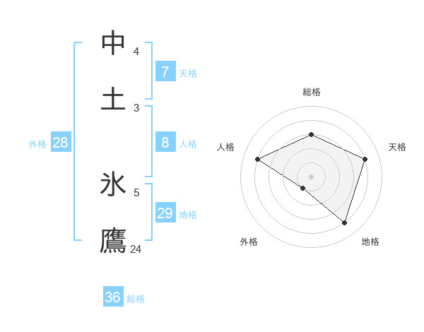中土 氷鷹さんの総格は36画の3点!