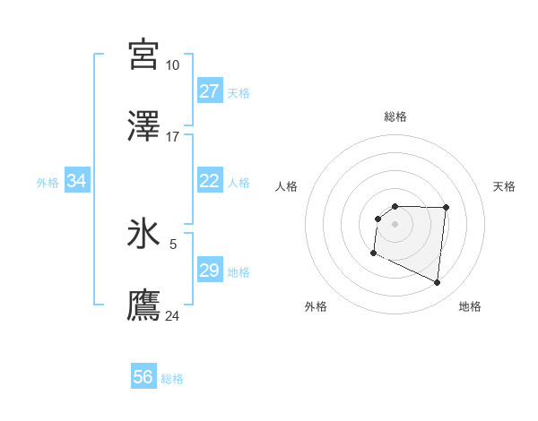 宮澤 氷鷹さんを姓名の画数から五運を鑑定