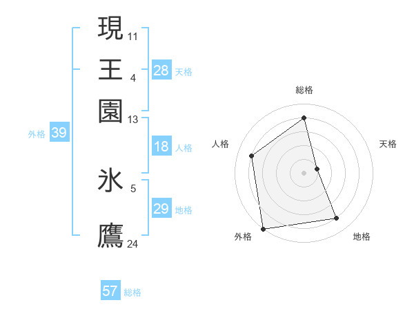 現王園 氷鷹さんを姓名の画数から五運を鑑定