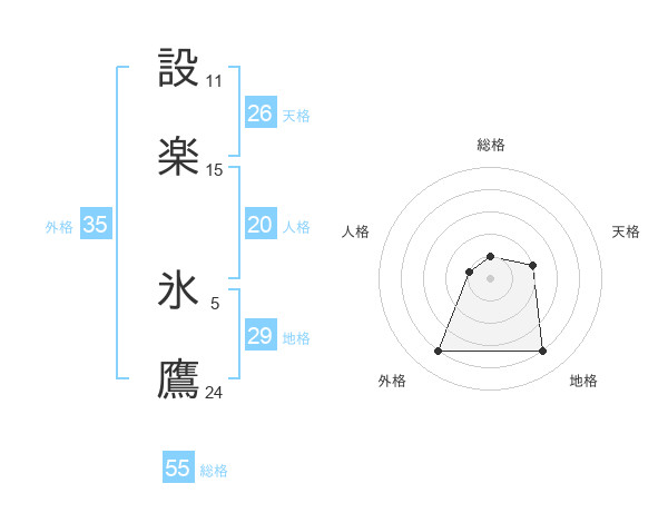 設楽 氷鷹さんを姓名の画数から五運を鑑定