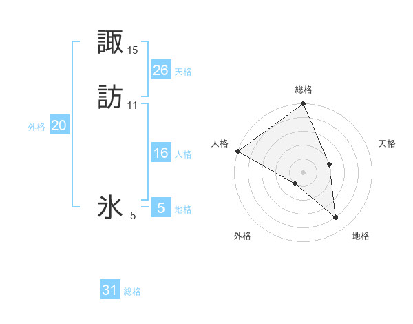 諏訪 氷さんを姓名の画数から五運を鑑定
