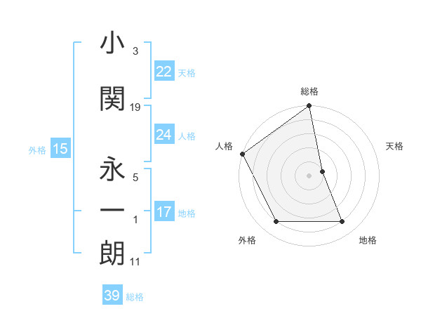 小関 永一朗さんを姓名の画数から五運を鑑定