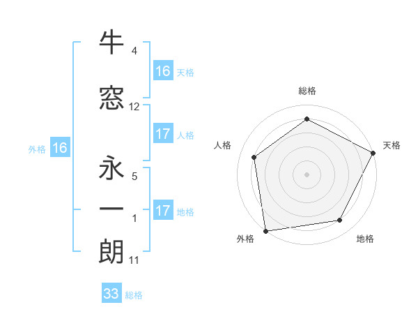 牛窓 永一朗さんを姓名の画数から五運を鑑定