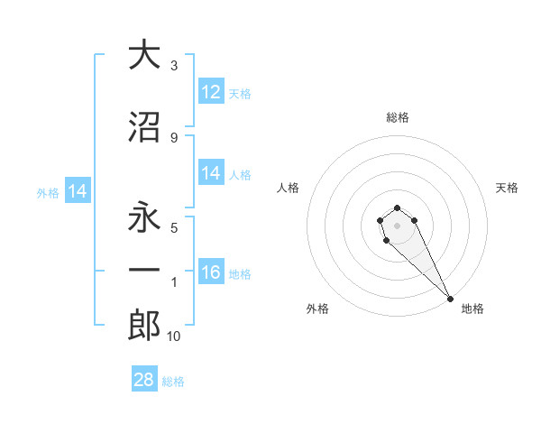 大沼 永一郎さんを姓名の画数から五運を鑑定