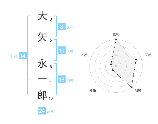 大矢 永一郎さんの総格は24画の5点!