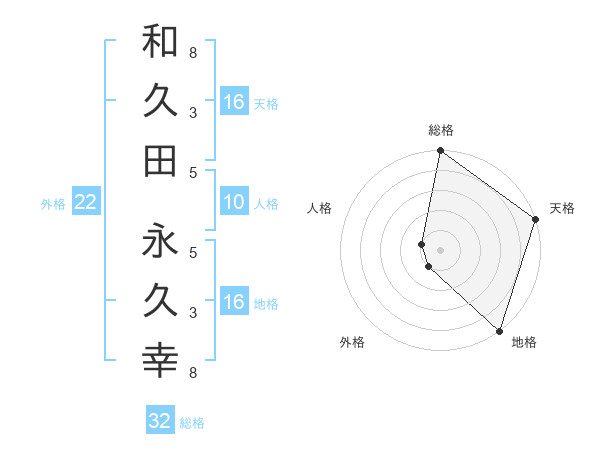 和久田 永久幸さんの総格は32画の5点