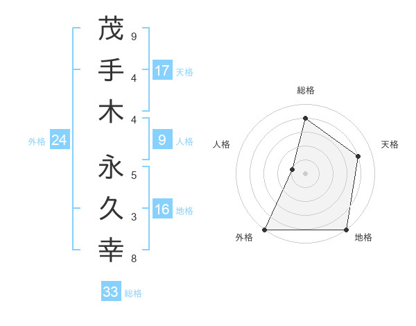 茂手木 永久幸さんの総格は33画の4点