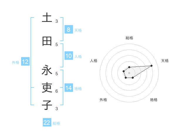 土田 永吏子さんを姓名の画数から五運を鑑定